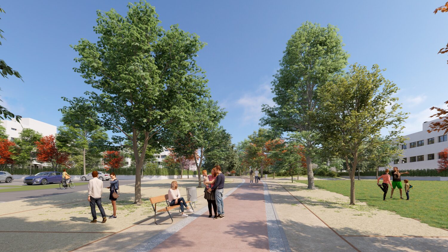 El planteamiento busca que el parque forme parte del día a día del vecindario, con espacios estanciales próximos a las viviendas y una convivencia más equilibrada entre lo público y lo privado.