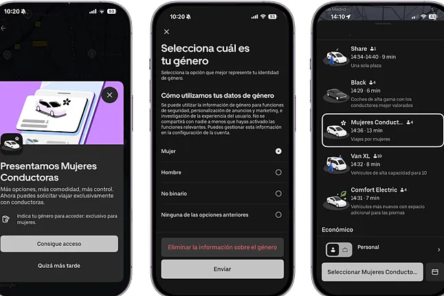 La plataforma de movilidad Uber ha puesto en marcha en España una nueva funcionalidad dentro de su aplicación que permite a las conductoras aceptar exclusivamente viajes solicitados por mujeres. La iniciativa, denominada “Mujeres Conductoras”, también permite a las pasajeras elegir que su trayecto sea realizado únicamente por una chófer.